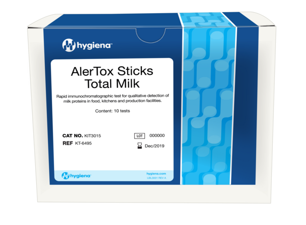 Las tiras reactivas AlerTox Total Milk de Hygiena son la solución ideal para la detección y caracterización rápidas de proteínas de la leche, fáciles de usar para cualquier persona. Esto significa que las tiras reactivas AlerTox Total Milk facilitan la detección y prevención de la contaminación cruzada de la leche. La detección rápida de alérgenos de la leche es crucial para garantizar la seguridad del consumidor y el cumplimiento de las normativas, especialmente para los fabricantes de productos horneados, chocolates y confitería, alternativas lácteas, snacks, platos preparados y leche infantil. Este kit de fácil uso es ideal para quienes trabajan en industrias donde incluso cantidades mínimas de leche pueden desencadenar reacciones alérgicas y provocar costosas retiradas del mercado.
